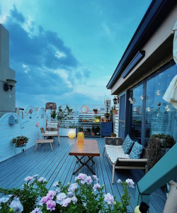 到了晚上,灯光就很重要了,串灯最常用,绕在栏杆上,或者挂在头顶,温馨又浪漫,太阳能地插灯,不用布线,很方便,还能在角落,放一盏落地灯,或者点几支香薰蜡烛,气氛瞬间就来了,有了光,露台才能,从早美到晚。