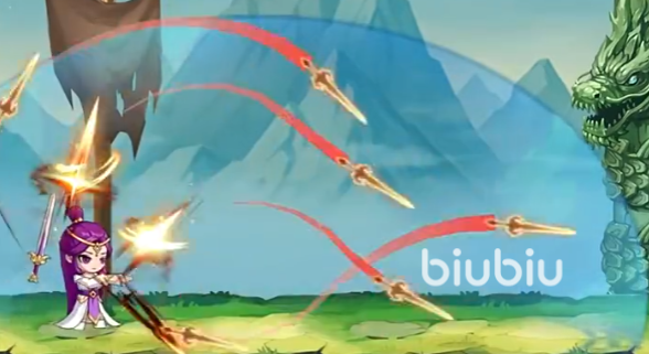 九天玄女的普攻会从远处放出多支剑来进行攻击,她的第一个技能在放出后可以向着前方瞬移,来躲避各种伤害,觉醒后使用会在原地留下旋风,旋风可以对周边敌人造成一定输出,她的第二个技能会跳跃起来进行多次斩击。