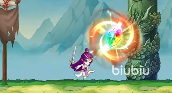觉醒后使用在斩击过后,还会在身前召唤出九彩神石爆炸,来打出二次伤害,她的第三个技能和普攻类似,会一次性放出多支剑来攻击,不过召唤出来的法剑数量会更多,能一次性对敌人打出高额伤害。