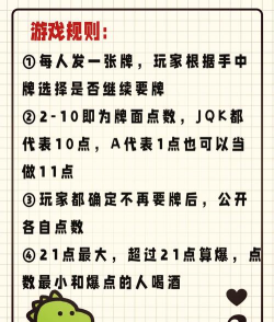 接着是游戏流程通常,庄家会给每位玩家,包括他自己,发两张牌,玩家的牌是明牌,大家都看得见,但庄家会有一张牌是暗牌,盖着的,然后从你开始,你可以选择“要牌”,让庄家再发一张牌给你,也可以选择“停牌”,表示不再要牌,等待最终比大小。