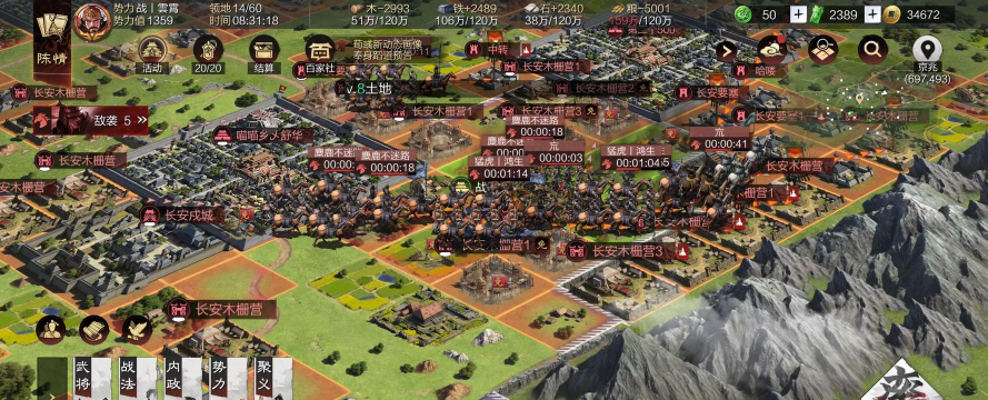 率土之滨的核心,是土地与资源,你开局只有一座主城,周围都是空地,你需要派部队去占领,这些土地能产出资源,比如木材、铁矿、石料和粮食,资源是发展的根本,有了它们,你才能升级建筑,训练军队,所以前期,多占空地是关键。