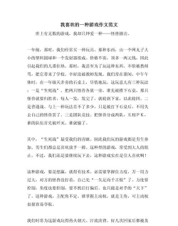 你要明确一点,这篇作文的重点,不是游戏本身,而是你的“喜欢”,所以,你的文章,一定要围绕“为什么喜欢”来展开,你可以写一个具体的游戏,也可以写一类游戏,但无论写什么,都要写出真情实感。