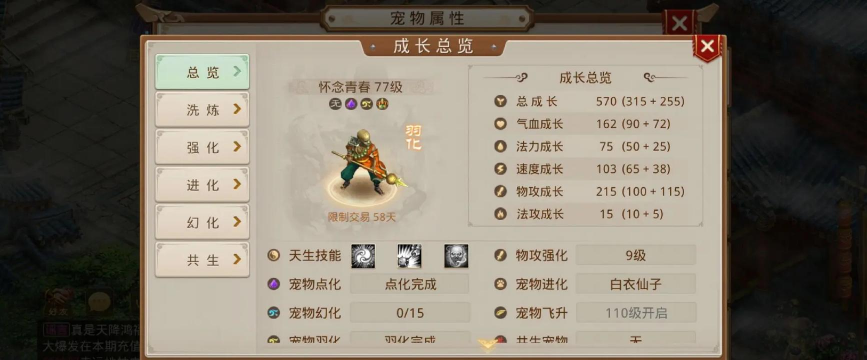 宠物进化成功,只是第一步,后续的培养,同样重要,进化后,宠物的成长变了,但等级、技能、亲密度,都保持不变,你需要重新规划,它的加点方案。