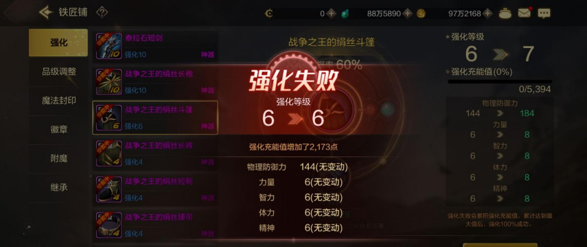 强化失败,实在太常见了,这时候,心态千万别崩,一次失败,不代表什么,千万不要赌气,继续狂点,那样只会,损失更惨重,你可以先去,做做别的任务,或者下线休息,等心情平复了,再回来尝试,记住,游戏是为了开心,别让强化搞坏了心情。