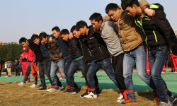 队伍怎么站,这是第一步,也是最关键的一步,一般来说,个子高的站中间,这样队伍更稳,个子矮的站两边,这样不容易摔倒,大家要肩并肩,紧紧地靠在一起,然后呢,把相邻的脚绑好,绑的时候别太松,也别太紧,太松了容易散,太紧了会不舒服,影响走路。
