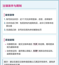 注销的时候,一定要看清楚提示,有些游戏注销后,账号就彻底没了,数据也无法恢复,所以,要三思而后行,另外,注销可能需要验证身份,比如输入密码,或者接收验证码,这些步骤不能省,是为了保障账号安全。
