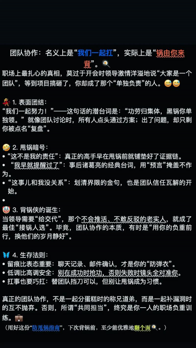 先看甩锅的常见套路,很多人甩锅,其实有固定模式,比如,他会先找理由,说自己网络卡,或者设备不行,然后,他会暗示你,是你支援慢了,或者操作失误,他可能直接开喷,把责任全推给你,了解这些套路,你才能见招拆招。