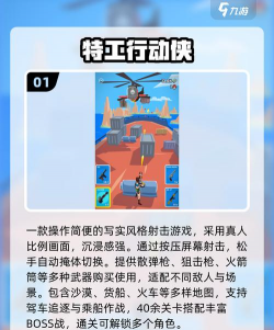 它是一款动作射击游戏,背景设定在现代,玩家扮演特工角色,执行各种秘密任务,游戏画面很精致,场景设计也很丰富,从城市街头,到秘密基地,都有涉及,玩起来代入感很强。