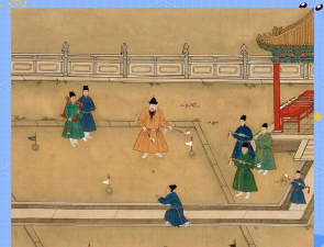 户外活动,同样精彩,比如蹴鞠,就是古代的足球,明朝人,也爱踢球,宫廷里,还有专门的比赛,还有捶丸,很像现在的高尔夫,用球杆击球,打进洞里,这项运动,需要技巧和耐心,特别适合,悠闲的午后时光。