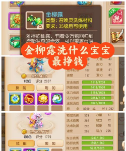 先看金柳露是什么金柳露,就是洗宝宝用的,它能重置召唤兽的资质,还有技能,让你的宠物焕然一新,不过,洗一次就要用一个,消耗量可不小。