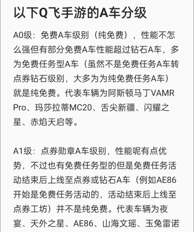 你是不是也在找,哪辆a车最好用,其实,这个问题,很多人都在问,不过,答案并不固定,因为,每辆a车,都有自己的特点,所以,今天,我们就来聊聊,手游飞车里的a车,看看它们的排行,到底该怎么看。