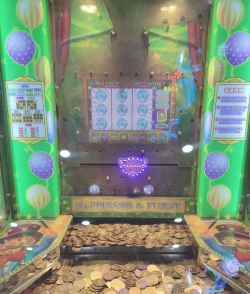 然后要观察机器状态,玩之前,先看奖池厚度,如果硬币堆得很满,边缘快溢出了,这时机会更好,因为轻轻一推,就可能掉币,反之,如果奖池很薄,就需要耐心,等待别人“养”机器。