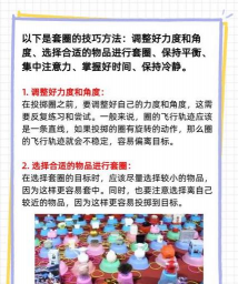 接着聊聊投掷技巧,别用蛮力,手腕轻轻一抖,让圈旋转着飞出,这样更稳,瞄准时别盯着圈,要看准目标物的底部,因为圈是落下去的,练习几次就能找到感觉,其实熟能生巧。
