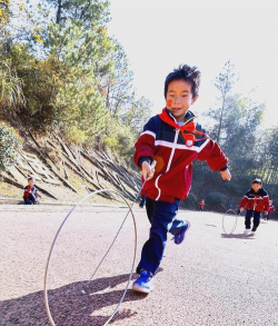 再看跳房子,用粉笔画格子,单脚跳进去,再跳出来,不能踩线,格子有数字,要按顺序跳,这个游戏,考验平衡,也考验耐心,女孩子特别喜欢,边跳边唱,非常开心。