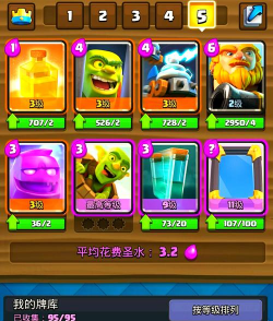 圣水是游戏里的资源,要算着用,不能一下子全花光,开局可以先放个低费卡,试探一下,看看对手怎么出牌,然后根据对手的卡组,来决定自己的打法,如果对手喜欢快攻,你就要留点圣水防守,如果对手喜欢防守,你就可以慢慢攒兵,找机会一波推过去。