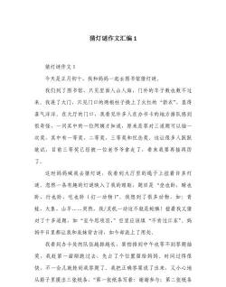 在家玩灯谜游戏,是一件快乐的事,把它写成作文,也不难,只要你用心观察,认真记录,再融入自己的思考,就能写出一篇,既有趣又有深度的好作文,下次再遇到,类似的作文题目,你就知道该怎么做了,不妨现在就试试,拿起笔,记录下你家的灯谜时光吧。