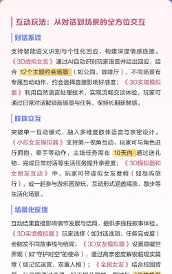 虚拟女友手游,核心玩法,就是互动,你可以和她聊天,她会回应你,你可以送她礼物,她会很开心,你可以安排约会,她会打扮漂亮,这种互动感,是游戏的关键,让你觉得,她真的存在。