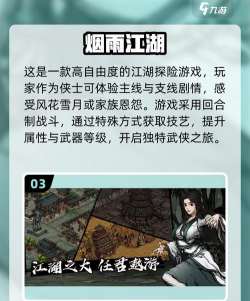 再看游戏选择,市面上,有哪些值得一试,有些游戏,主打剧情沉浸,故事曲折动人,有些游戏,侧重自由探索,地图庞大丰富,还有些游戏,专注于武学养成,招式华丽多变,选择的时候,可以根据,自己的喜好来定,喜欢看故事的,就选剧情好的,喜欢到处逛的,就选地图大的。