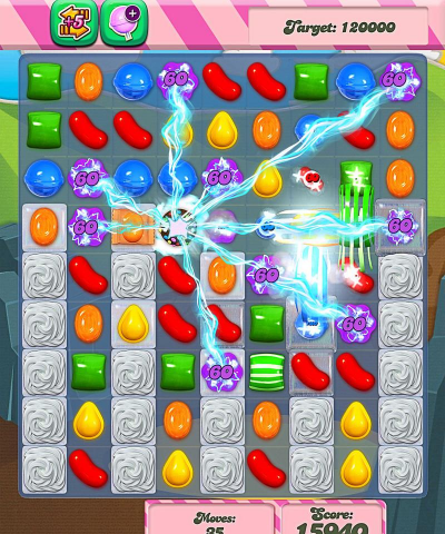 消除三个糖果是最基础的,但想得高分,就要制造特殊糖果,比如四个糖果连成一条线,就能生成一个条纹糖果,它能消除一整行或一整列,五个糖果连成L形或T形,就能生成包装糖果,它能引爆周围一圈的糖果,把条纹糖果和包装糖果交换,效果就更厉害了,能清掉一大片。