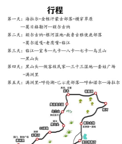 呼伦贝尔很大,时间要算好,一般来说,玩五天比较合适,第一天到海拉尔,可以先适应一下,然后去莫日格勒河,看看九曲十八弯,第二天去额尔古纳,湿地公园很漂亮,白桦林也值得走一走,第三天到恩和,体验俄罗斯风情,住一晚木刻楞,第四天去黑山头,可以骑马看日落,晚上住蒙古包,第五天走边防公路,看看满洲里国门,然后就可以返程了,这样安排,节奏不会太赶。