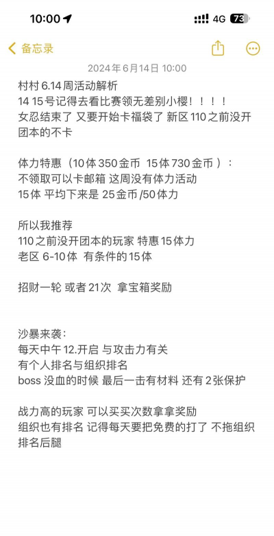 从长远来看,体力管理更重要,比如,新忍者上架时,需要大量刷碎片,就要提前存体力,或者预留购买体力的金币,平时,也可以适当存一些体力药水,以备不时之需,同时,关注游戏活动,经常有双倍掉落,这时候集中使用体力,收益会翻倍,所以,眼光放长远一点,体力就能创造更多价值。