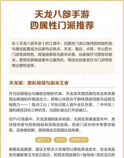 先看门派定位,这是基础,天龙手游里,门派大致分三类,输出、坦克、辅助,输出门派,伤害高,打怪快,比如逍遥派,远程攻击,技能华丽,但身板脆,需要走位,坦克门派,比如少林,血厚防高,能扛伤害,适合喜欢,顶在前面的玩家,辅助门派,比如峨眉,能加血,能复活,团队核心,但输出一般,所以第一步,先想清楚,你喜欢哪种,战斗风格。