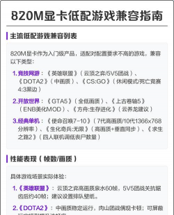 想用820m显卡玩游戏,很多人都有这个疑问,毕竟,它的性能确实不算强,但是,别急着失望,其实,很多游戏它都能带得动,关键看你怎么设置,今天,我们就来聊聊,820m显卡到底能玩哪些游戏。