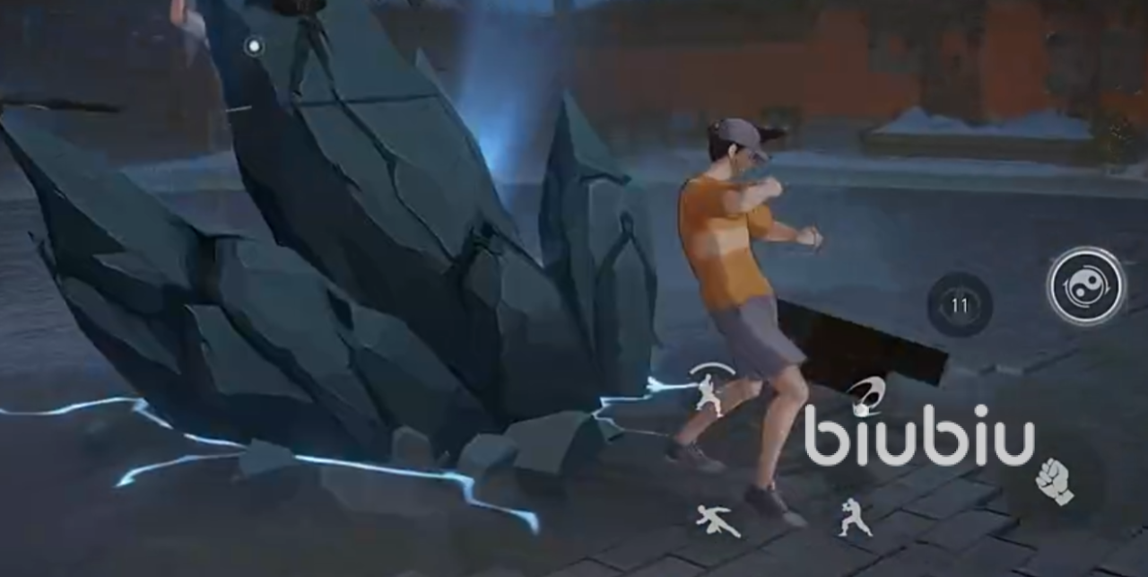 在消失之前如果被对手给触碰,会立刻燃爆,火焰还可以命中倒地敌人,释放“回沙踏”最后一击时,若附近存在火焰,则自动吸收并强化踢击,转化为高伤害的险招,第二种土属性会在脚下召唤石块,推动角色快速向前突进,落地后伴随一记重拳将敌人给击飞,第三种雷属性会召唤多道落雷打击敌人,他的大招会在定身目标后贴近将其击飞。