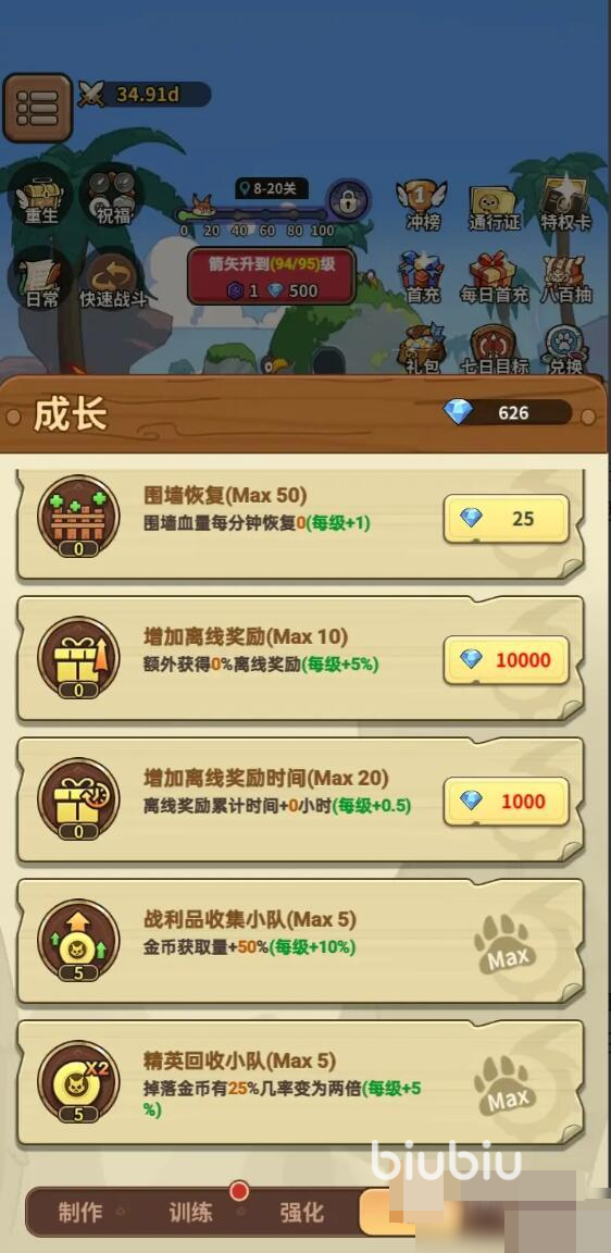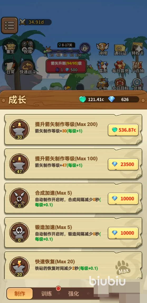 在整个五芒星战记里面,装备的核心是弓箭,但基础弓箭是通过领取铁砧来制作的,初始的弓箭伤害对于前期还是有用,随着往后面弓箭的伤害已经远远达不到效果,这时候有两个途径,一个是使用钻石升级,升级后的弓箭比之前的伤害要高很多,所以一定要及时升级,第二个是升阶,升阶是2个弓箭进行升阶,品质会提高,伤害同样增加不少。