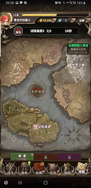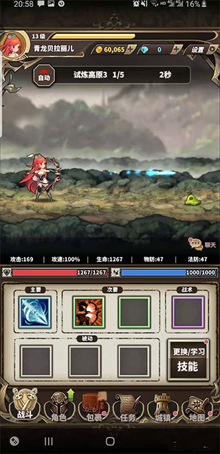 首先点击的就是右下角的地图,在地图中我们可以选择冒险的关卡,直接开启战斗 即可,在战斗过程中我们可以看到主界面下方就是我们的技能了。