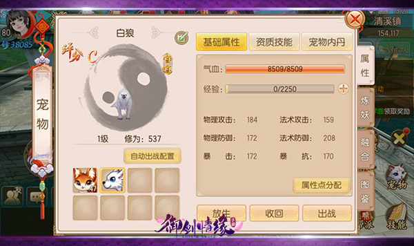 宠物在《御剑情缘》中可以跟随玩家战斗,为玩家增添战力,宠物的品质有野生、宝宝、变异三种,其中刚获得的宠物一般都是野生的,玩家可以通过道具“洗髓丹”来为自己的宠物进行洗髓,洗髓后一般都是宝宝,有极小几率成为变异宠物。在新手主线中我们可以获得第一只宠物“狐灵”,而随着等级提升至35级,我们又能在“福利─等级福利”中领到一只“白狼”,而怎么获得更多种类的宠物呢,这就需要我们去一般主城中寻找名为“宠物商人”的NPC进行购买了。