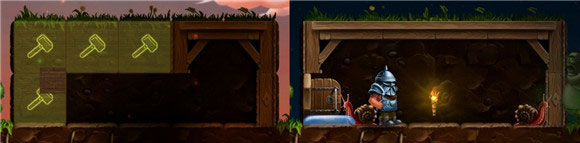 第一步要先建造一些背墙,你所用的第一种背墙是泥土。只需要点击你收集的泥土,然后点击一些开放的空间即可。
