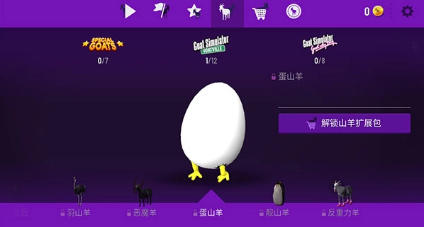 2、完成设定的任务可获取得分,这些得分能用于解锁不同的山羊角色。