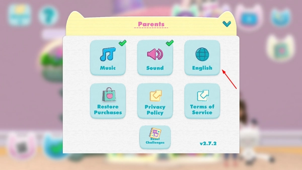 1、打开盖比的娃娃屋游戏(Gabby's Dollhouse),点击右上角的齿轮图标进入设置界面;