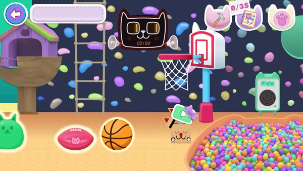 游戏精心打造了七座风格独特的沉浸式空间,从星光璀璨的卧室到泡泡翻腾的浴室,从充满节奏感的音乐角到长满发光蒲公英的精灵花园,孩子能自由布置家具、更换壁纸、搭配装饰,在真实比例的空间里实践审美选择。还有多位个性鲜明的玩伴NPC等待孩子去认识:喜欢制作甜点的蛋糕猫、擅长声波实验的DJ喵薄荷、总在手工房里专注串珠子的宝宝盒……每个角色都有专属的故事线和成长任务,完成互动就能解锁隐藏道具和趣味彩蛋。特别加入的猫咪陪伴系统,让孩子通过定时喂食、定制猫窝、设计互动小游戏等方式,体会责任与共情的含义,在虚拟世界中建立温柔而坚定的情感联系。