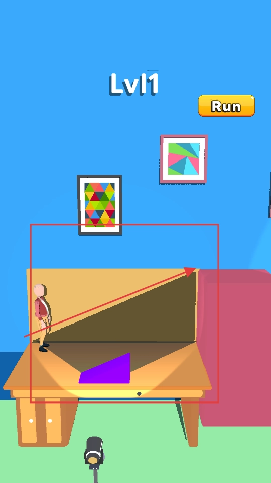 1、点击“TAP TO START”进入关卡,仔细观察场景里人物和光影之间的关联,通过移动紫色物体来调整光影的形状,从而为人物开辟出安全的移动路线。