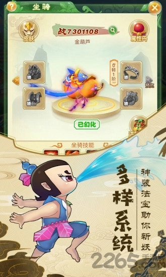 《金刚葫芦娃OL》是一款由经典动漫改编的回合制游戏,以葫芦兄弟为背景题材。在游戏中,玩家将重温儿时的欢乐时光,操控不同的葫芦娃角色与敌人展开紧张刺激的对决,尽情回味童年的快感。感兴趣的朋友可以前往2265网体验!