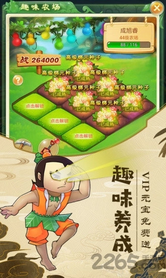 3、游戏中包含多种趣味养成玩法,玩家能够使用游戏内的金币购置一块土地,在土地上种植各类珍贵材料,再利用这些材料升级装备或者兑换其他所需材料。