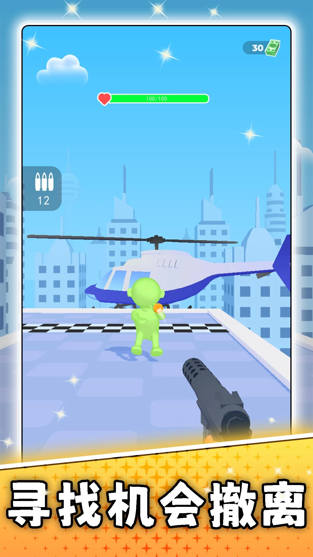 1、以基础手枪开启战斗,通过点击与滑动操作进行瞄准射击,消灭场景内的敌人以推进关卡。