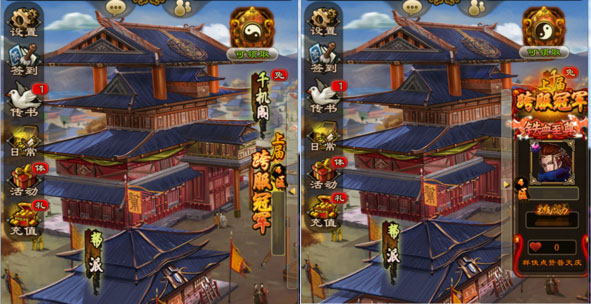 3.比赛制度为淘汰赛,依次为32强-16强-8强-4强-2强-冠军,“决战巅峰”加入了每轮比赛前更换武学的功能。