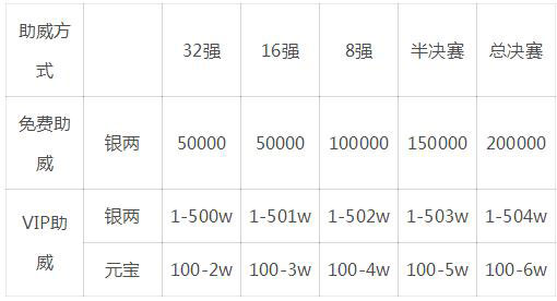 13.所有玩家均可免费银两助威,该奖励不参与奖励倍率计算。