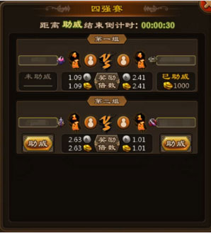 准备时间过后,服务器里的大侠们可以点击【助威】进行助威操作。