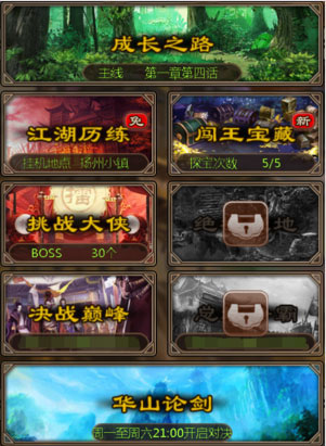 在江湖界面里,我们可以看到界面多了一个决战巅峰的图标选项,这就是“决战巅峰”的入口。