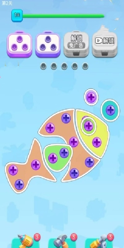 1、点击螺丝即可拧松并释放彩色螺帽,长按还能连续拧动多个螺丝,以此提高操作效率。