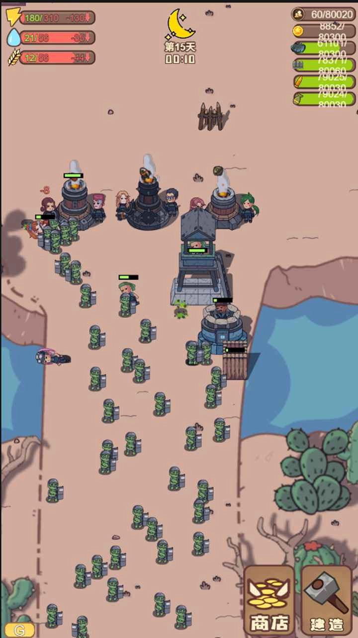3、夜晚会有持续涌来的尸潮,玩家得合理布置防线,安排居民驻守,打造出坚不可摧的防御工事。