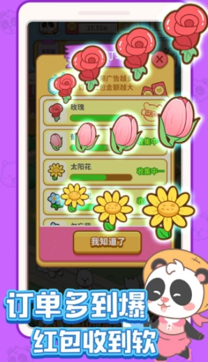 《全民开花店》是一款超有趣的经营类游戏,玩家在游戏里能拥有一家专属花店。它有着轻松愉快的画风和简单易上手的经营玩法,完成花店的经营任务就能获得更多红包奖励,多完成任务还能解锁更多稀有的花朵呢!