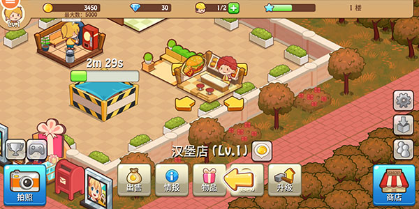 -建造并升级各种丰富的设施以及装饰品,包括餐厅,烘培店,服装店,电子游戏中心等等