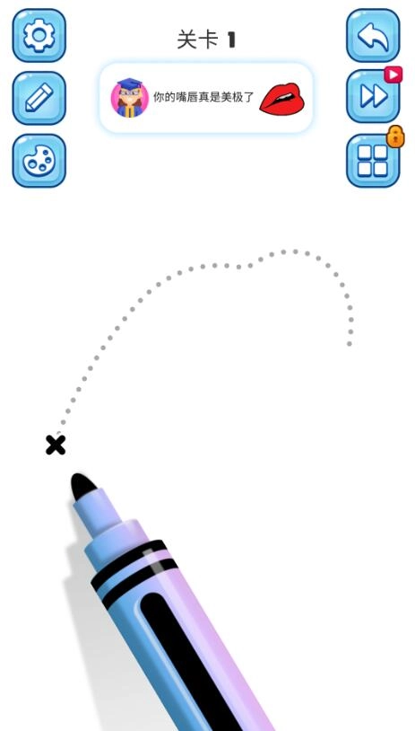 1、进入关卡后,留意界面里的虚线轮廓,用画笔沿着虚线的轨迹完整画出来,保证线条和虚线的走向贴合,这样就能精准还原目标图案的轮廓了。