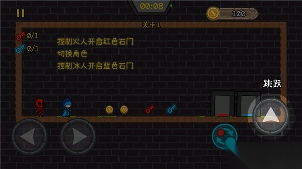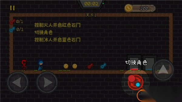 1、冰火人森林冒险设有两个角色,分别是火人和冰人,不同角色能够挑战不同的内容。