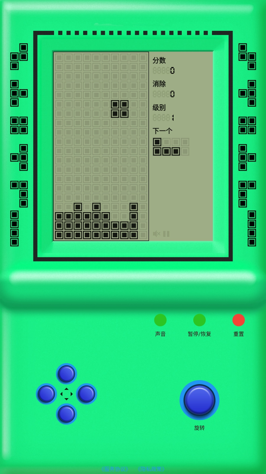 长按住按钮,方块就会以最快速度下落;松开按钮,下落速度便会恢复正常,操作可随时进行。